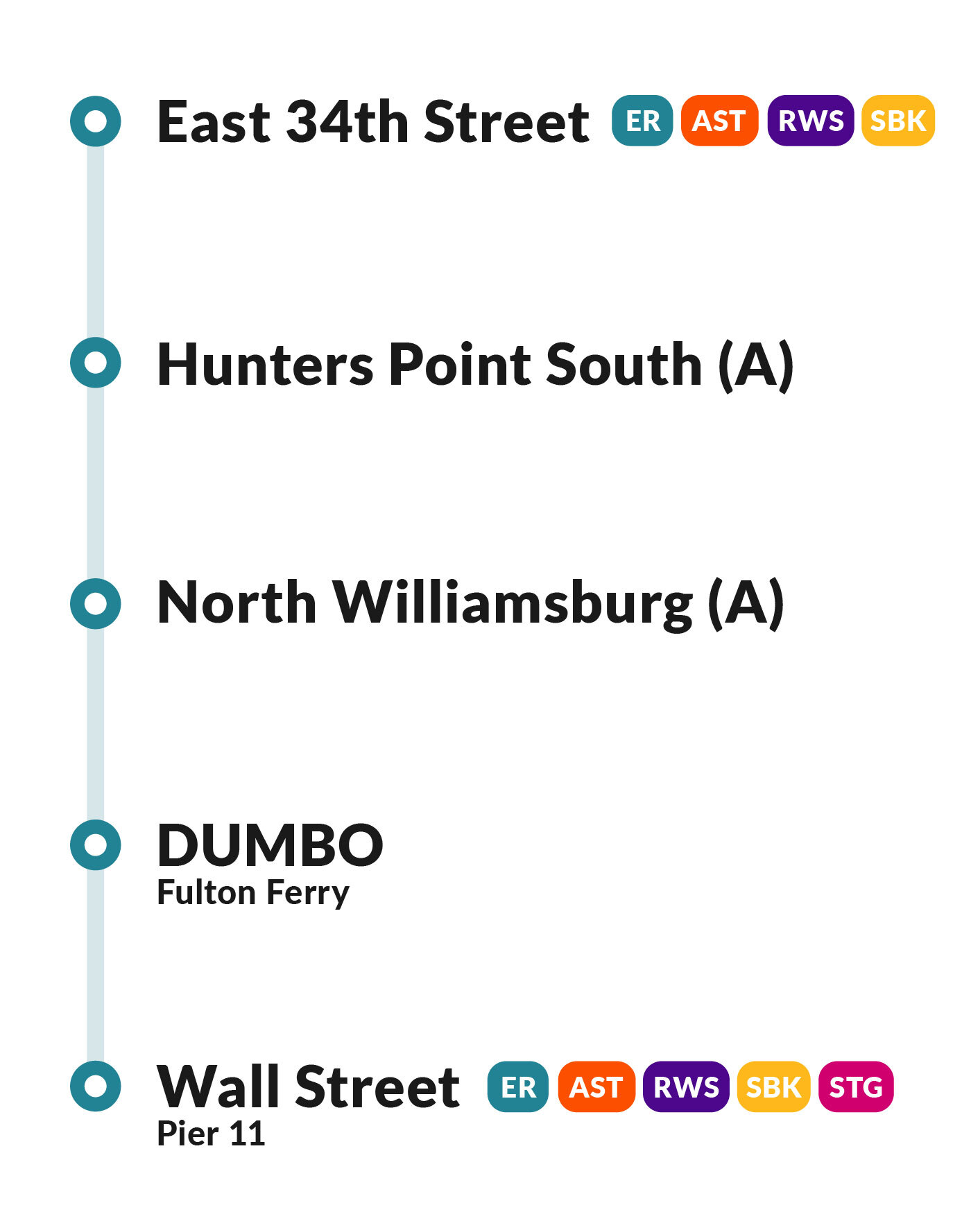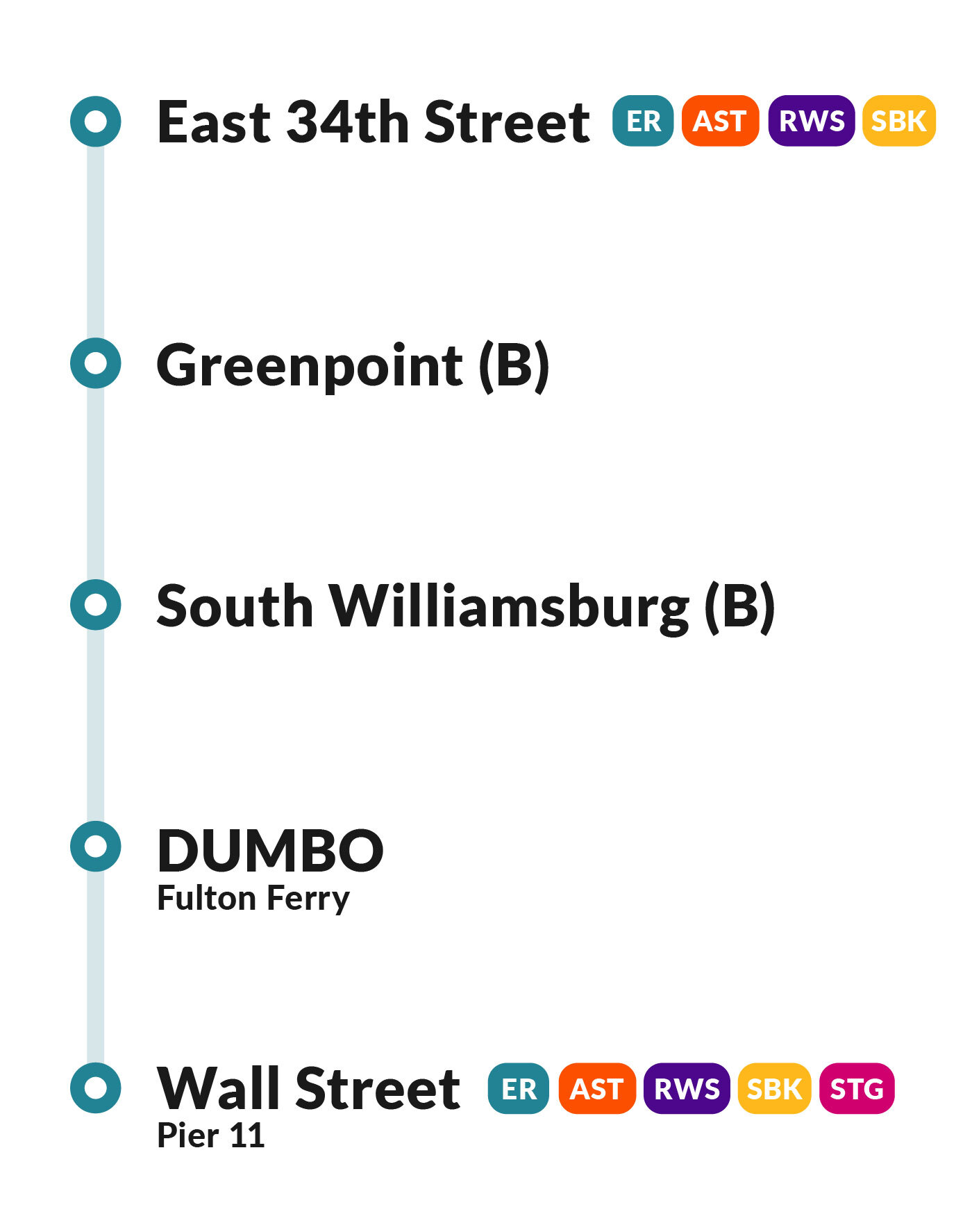East River (A) and East River (B) routes make different stops to provide faster service. Please check the schedule to confirm that your station is served.